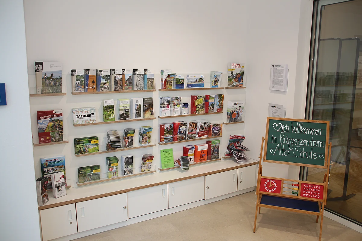 Im Foyer, das von 8 bis 20 Uhr geöffnet ist, finden Gäste und Tagestouristen alle wichtigen Infomaterialien wie Rad- und Wanderkarten sowie weiteres touristisches Werbematerial über Thalmässing und dem Naturpark Altmühltal.